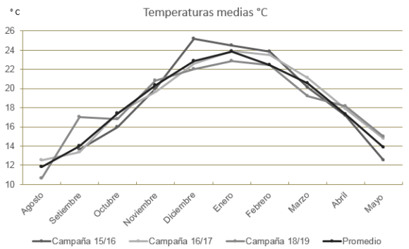 Figura 2: Distribución de las Temperaturas medias en °C durante el ciclo