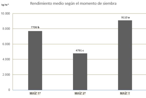 Figura 3: Rendimiento promedio en Kg/ha en los tres momentos de siembra: Maíz